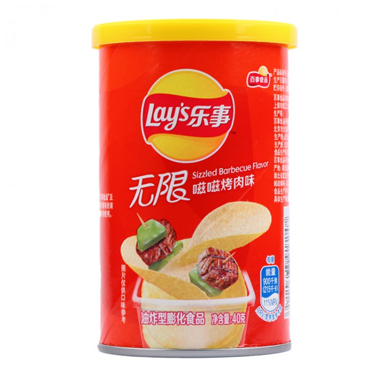 乐事薯片 滋滋烤肉味 40g 马铃薯膨化零食 罐装