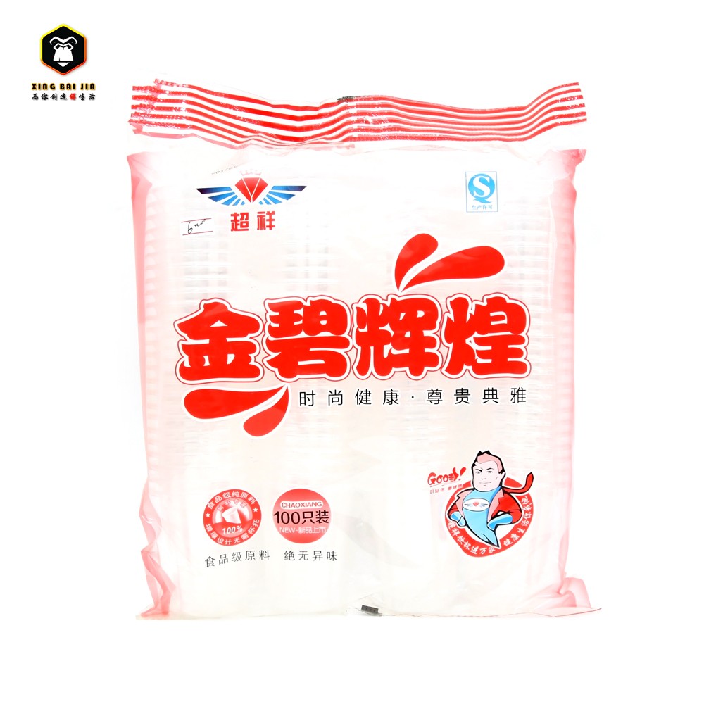 超祥 食品级异形加厚一次性水杯 金碧辉煌塑料透明杯子 100只