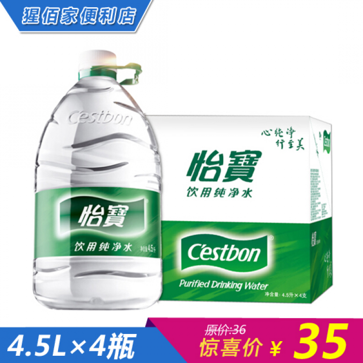怡宝 桶装纯净水 4.5L*4 整箱装