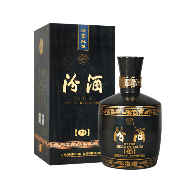 汾酒 53度 金奖20 黑坛 475mL 单瓶 清香型白酒