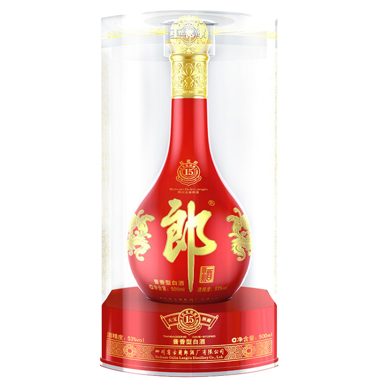 郎酒 红花郎15年 53度 500ml 酱香型白酒 高度白酒