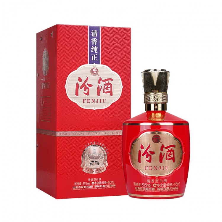 山西汾酒 杏花村酒 53度 1915巴拿马汾酒 475ml 礼盒装清香型白酒