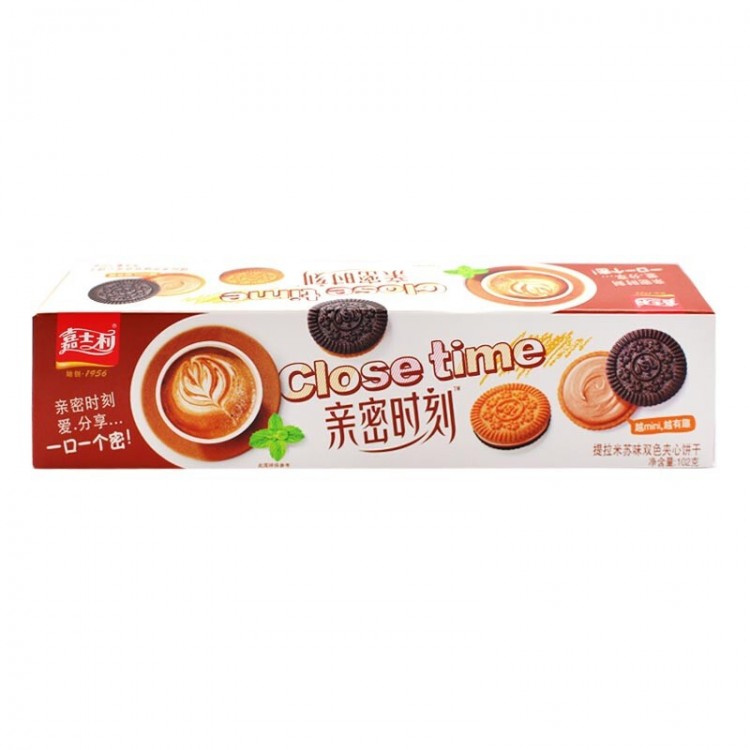嘉士利 亲密时刻 提拉米苏味 双色夹心饼102g 多味迷你儿童休闲小零食