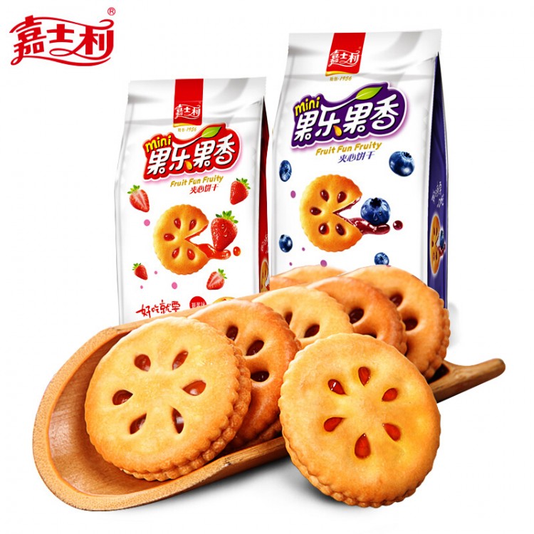 嘉士利 果乐果香 蓝莓+草莓果酱夹心饼干85g*2袋 混搭 办公室休闲零食