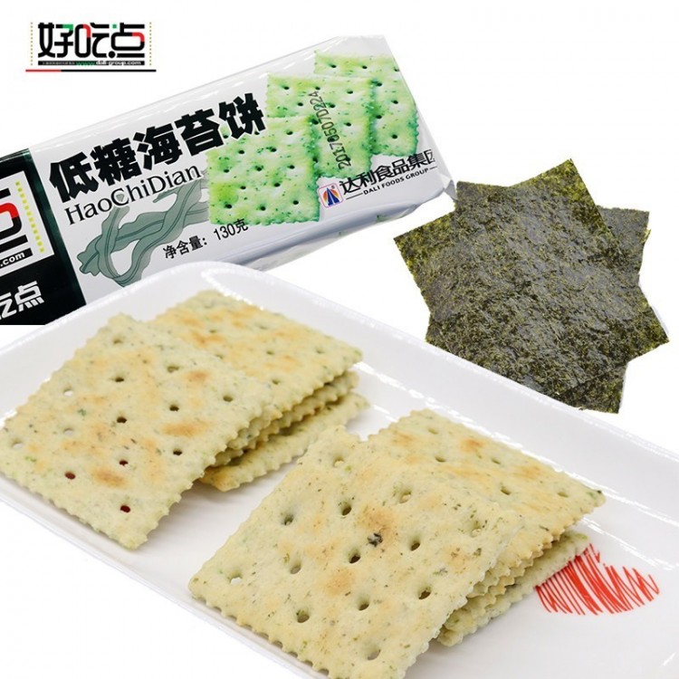 达利园 好吃点低糖海苔饼130g 粗粮饼早餐酥脆薄饼干咸味