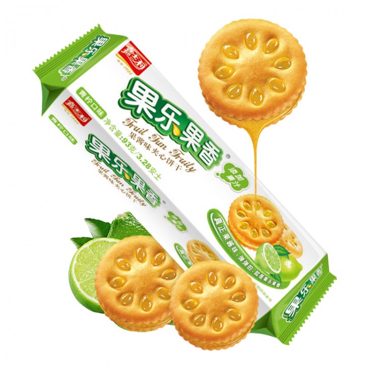 嘉士利 果乐果香 青柠味果酱夹心饼干93g 代餐零食